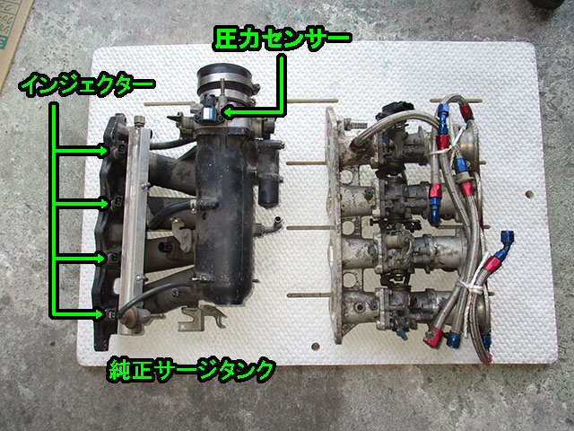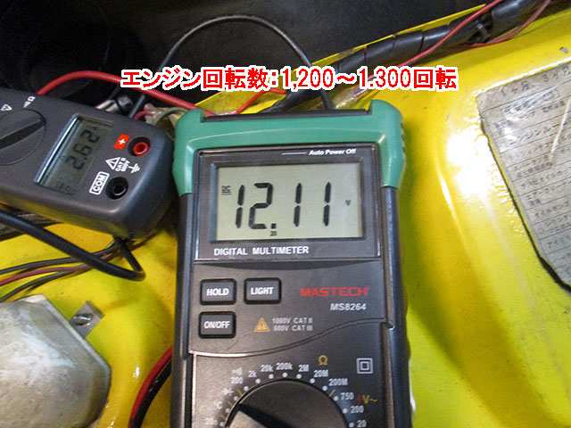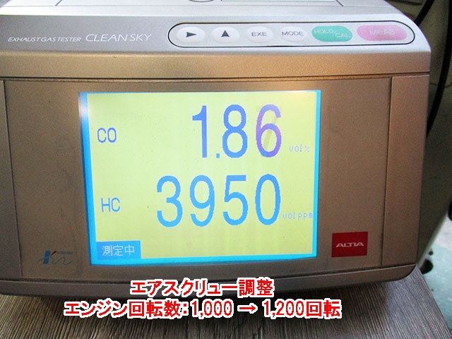 エンジン回転数を1,000回転から1,200回転に上げて、排ガステスターを見ながらエアスクリューを絞り(締め込み)ました。